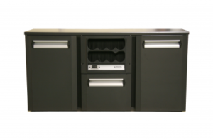 Une gamme de dessertes de bar résolument modernes et fonctionnelles pour vous simplifier le travail tout en vous offrant un design sobre. Prêtes à brancher ou groupe à distance, finitions anthracite, inox ou vitrées, elles sont équipées de portes pleines en configuration standard. Elles disposent de grandes poignées et de nombreuses options qui amélioreront vos capacités de rangement (blocs tiroirs, serrures, un marc à café ou un dessus inox avec plonge).